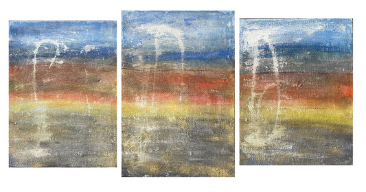 Painting on raw canvas AB#338 “Triptych Sunset”