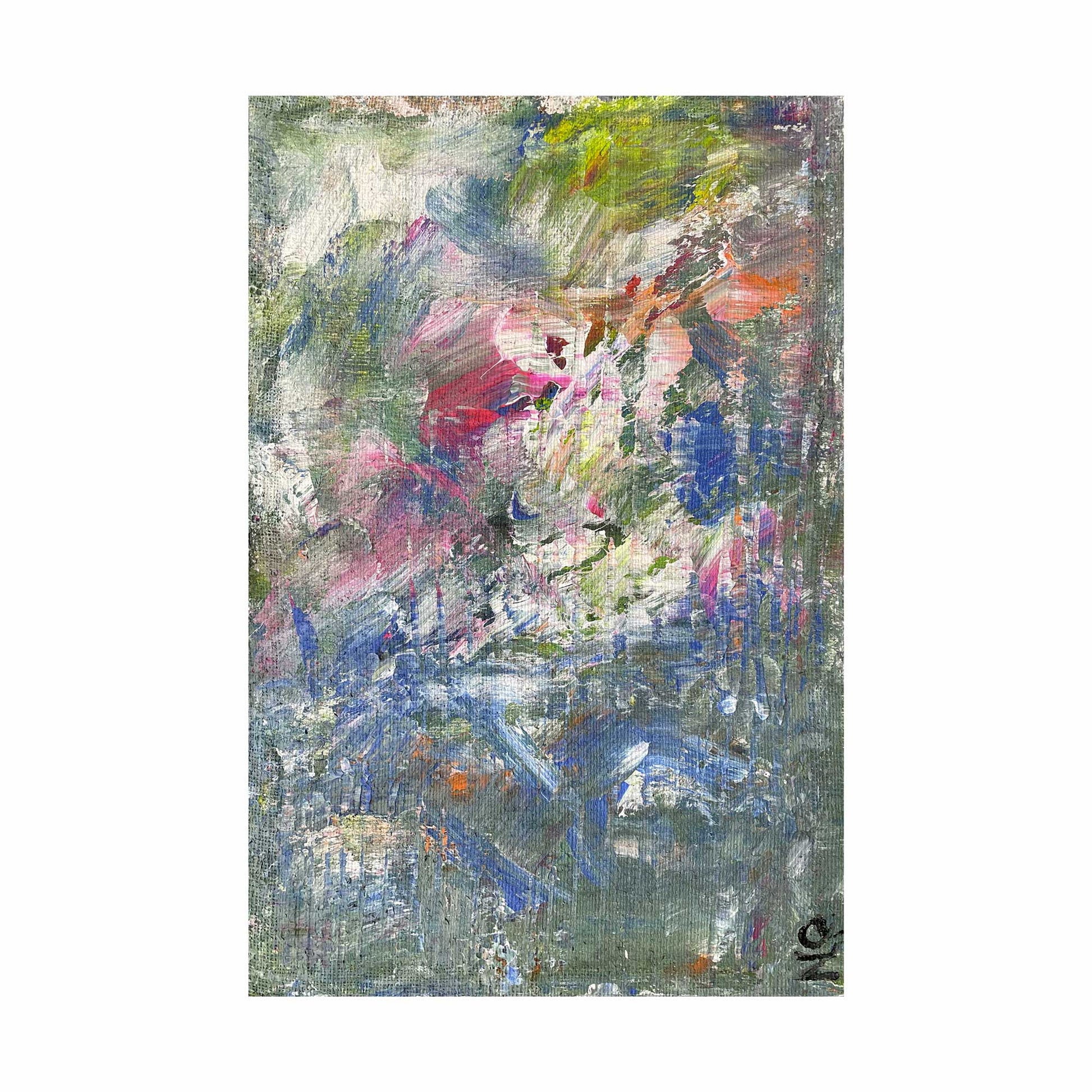 This abstract work, which I created in 2023, is inspired by spring as a season of rebirth and transformation. I worked with fluid pours of color, allowing reds and greens to intertwine with blues, interrupted by flashes of white and orange. The result is a chromatic weave that does not depict flowers in a figurative way but evokes them through the energy of contrasts and fusions. In this piece, I seek to convey the sensation of a vital explosio an emotional landscape where colors become the absolute protagonists, free to move and engage in dialogue across the canvas.